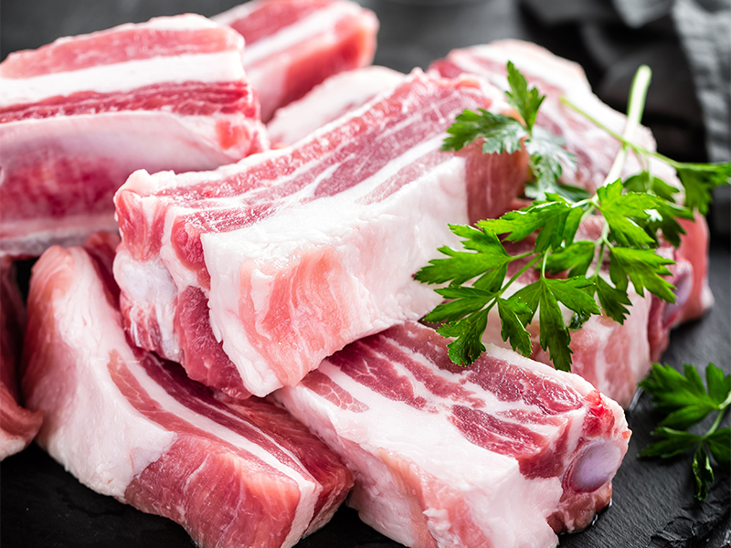 猪肋骨是猪胸腔部位的骨骼结构,主要是由肋骨和附着在上面的肉组成。猪肋骨一般有 14 - 15 对,它环绕在猪的胸腔周围,起到保护胸腔内器官的作用。这些肋骨形状弯曲,肉质鲜嫩多汁,并且骨头部分含有骨髓,营养丰富。